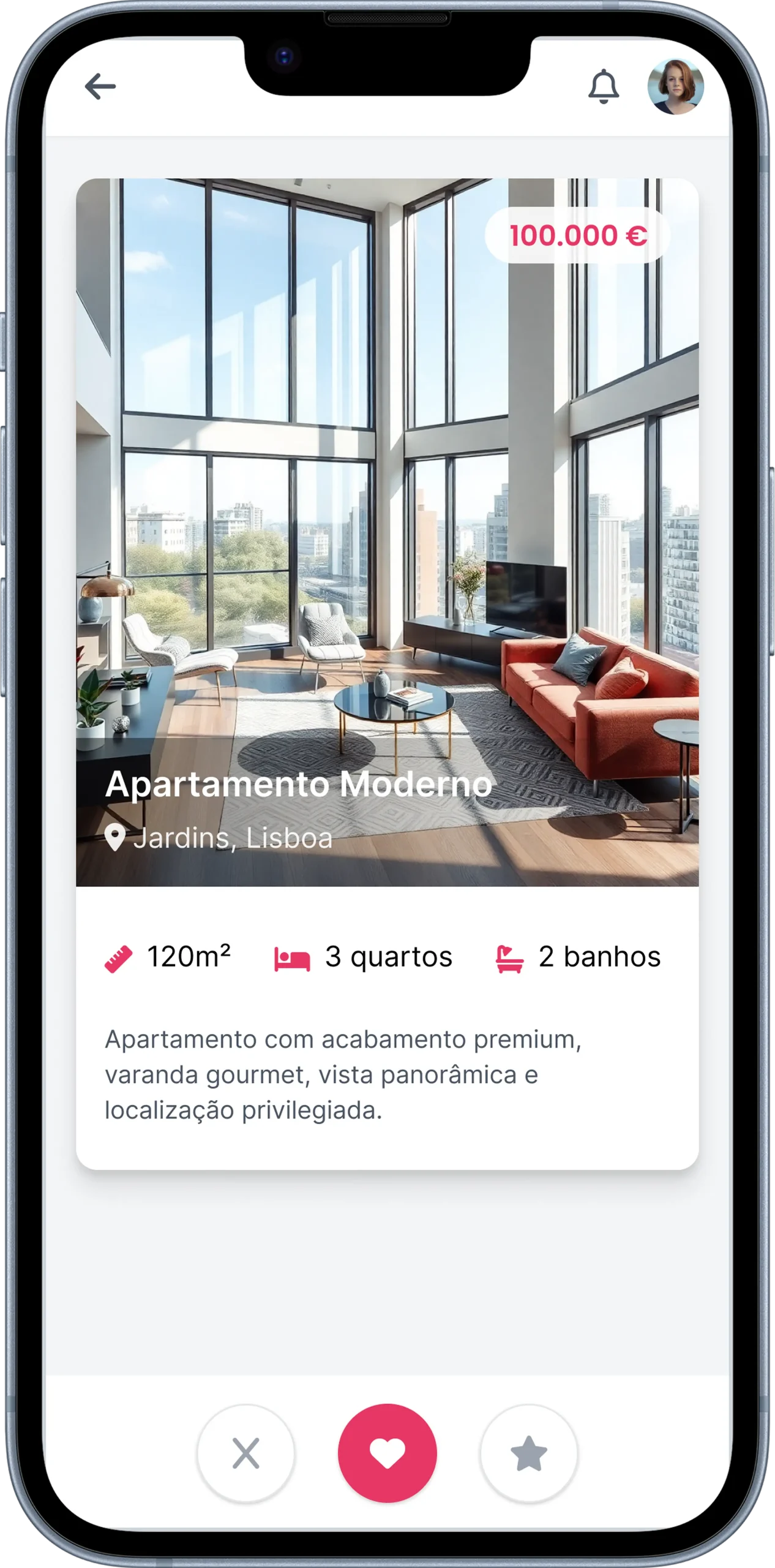 Cria o teu perfil, faz match com pessoas reais e avança com confiança.